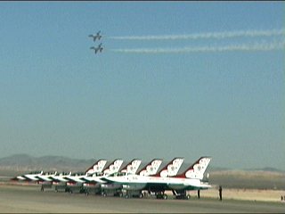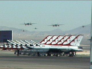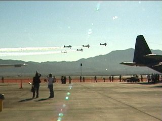 さて、今年のネリスエアショーは例年とは違います。なんたってアメリカ空軍60周年記念エアショー。アメリカ空軍の軌跡を辿ります。陸軍航空隊が誕生した頃の飛行機が離陸・・・第一次大戦期のフライトからエアショーが始まります。すごい。凄すぎる・・・。