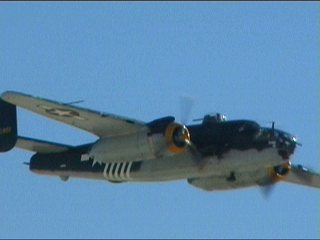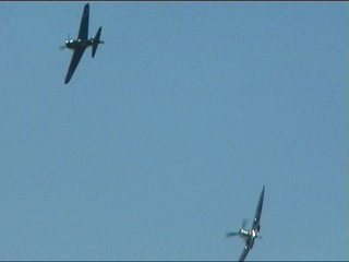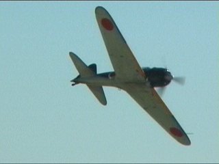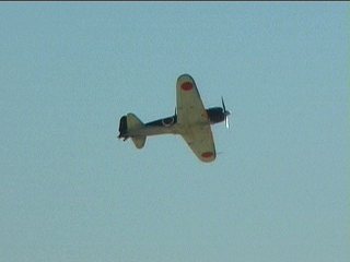 アメリカ軍戦闘機に追いかけ回されてました。それにしても、凄い飛びっぷり。ワタクシ、日本人ですが・・・失礼ながらあまり感慨とかはなかった。だってウォーバーズってあんまり知らないし・・・。でもやっぱり、第二次大戦のことは常々頭に入れておいた方が良いでしょうね。この飛行機が実際に使われてた時代とか。