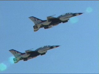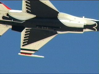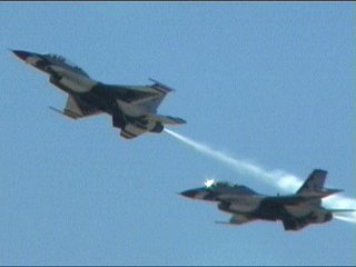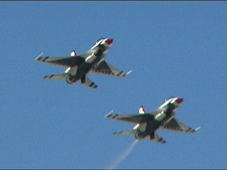 さて、そうこうしてたらいきなりこれ!!まだ午前!!プログラム上はバーズのランナップの時間・・・!なのにいきなりF-16Dが2機離陸です。あれー!?