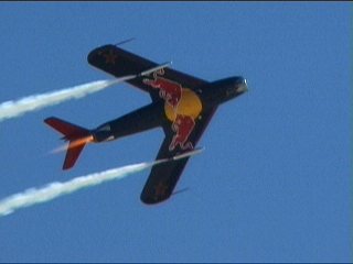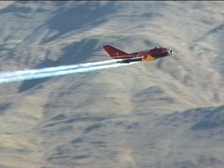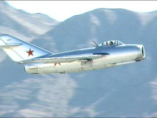 お、なんか派手なのが出てきました!アメリカでは比較的メジャーなMiG-19のデモです。