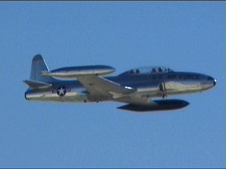 お!懐かしい姿だなあ。米空軍の歴史の中には、みなさんにもお馴染みのこれも登場します。ご存知、T-33。航空自衛隊にも大きな足跡を残した機種です。このエアショーでも、ナレーションで「KAWASAKI」の名前も何度も出ていました。