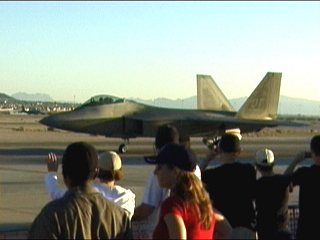 離陸はもちろんA/B全開で豪快に駆け上がります!前回エレメンドルフで見せたフライトはまだデモチーム発足前だったため、正式なデモではありませんでした。そのため、04年のネリスから何度かラプターは見てきたものの、本当のデモを見るのはこの時が初めて。ドキドキでした。動画を見ても震えています(笑)