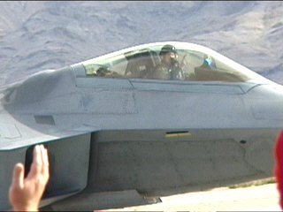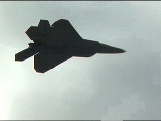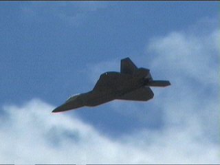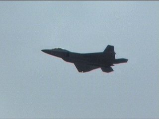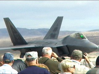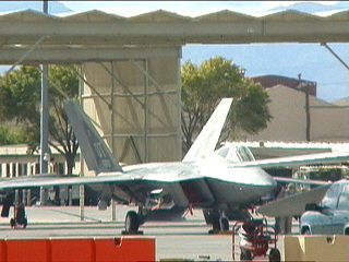あ。会場の遠くでF/A-22がホールドしてます。見えてますよ!