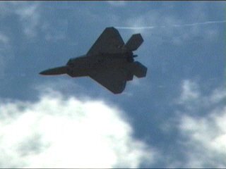 その歌が終わったぴったりのタイミングで米空軍の次世代を担う戦闘機F/A-22が会場上空に…