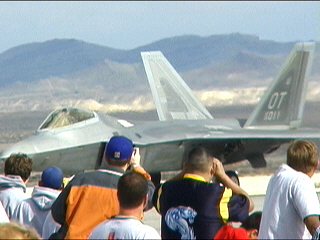 しかも観客に向かって一旦停止、「ここで写真撮れ!」て感じです。そりゃもう、最新鋭機でも隠すどころか見せる見せる。アメリカ人も写真撮りまくりです(^-^;)