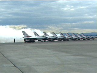 9機ものF-16が一斉にエンジンランナップ、そして最後にスモークチェック。かっこいいのなんの!