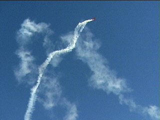 どこまでも澄んだ青空にスモークを曳くのはロックさんのお師匠、ショーン・D・タッカーしです!