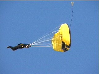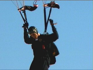 あ、そうでした!!陸軍パラシュートチーム・ゴールデンナイツ登場!!DC-3を使っちゃうあたり、凄い演出ですね!!思いつきもしませんでした!!こういうの大好きだなあ。そして、彼はこんな真横になって降下したりもします。