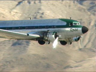 DC-3、極低空でフライバイ。30mぐらいある脚を付ければ地面に届きます。(どんな発想だ)