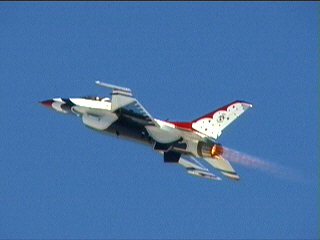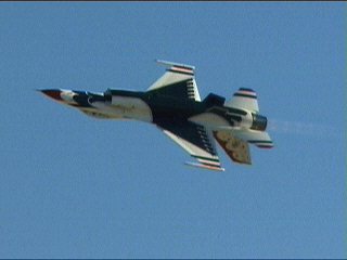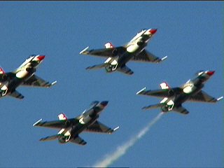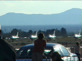 Air Demonstration Squadron -Thunder Birds- 登場ですっっ!!今シーズン、航空自衛隊50周年を祝ってパシフィックツアーを実施、日本はもちろん、グアム、韓国を含む太平洋地域に存在感を見せつけたサンダーバーズ。もちろんここはバーズのホームベースです。長かった今シーズンを締めくくるホームカミングショーです。いろいろな思いを胸に、最後のショーへと向かいます。私も、このフライトで百里、浜松での無念を晴らします。2004シーズンを締めくくるに最高の舞台が揃いました。