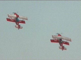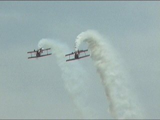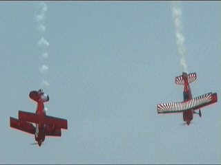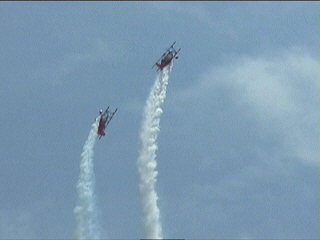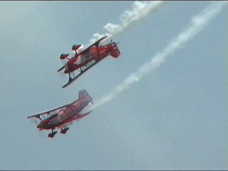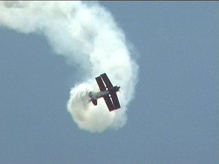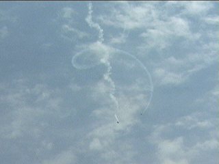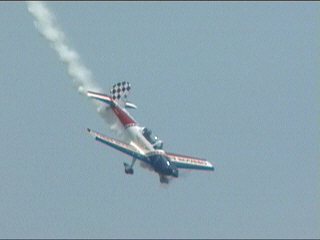 なんととんでもないフライトを!!フラットスピンで落ちてくる気体の周りをバレルロール??縦にコークスクリュー、しかも真ん中の機体をフラットスピンさせてやってるようなもんです。とんでもないです。