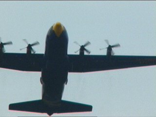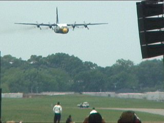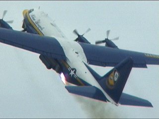 ブルーズの演技は実はC-130から始ります。ファットアルバートさんはチームの専用支援機ですよ。JATO(ジェットアシストテイクオフ)っちゅうデモでド派手に離陸します!!