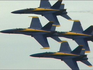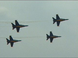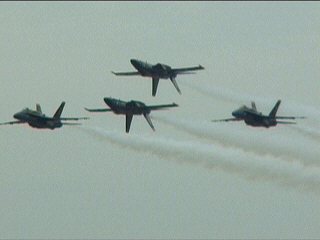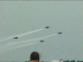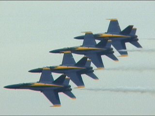 ご存知のとおり、アメリカ海軍のアクロバット飛行チームであり、メンバーは海軍・海兵隊から選抜されます。イタリアのフレッチェトリコローリと並んで世界最高とも称されるチームですね!!これを今日本当に見ちゃうのです!すでに鼻血でてるし。(笑)