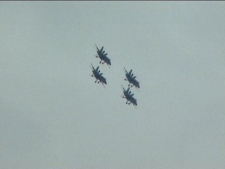 左からのスニークパスにやられた観客をさらにぶちのめす後ろからのスニークパスでした!!ちなみに、F-15のデモチームはこういう主翼からの巨大なボーテックスを「AngelWing」と呼んでますね♪こちらも文字通りAngelWingです♪