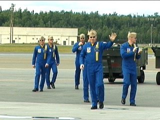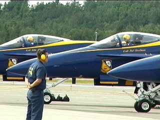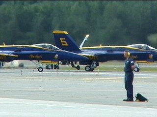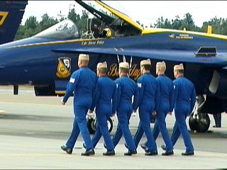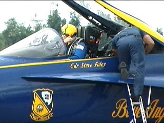 さて出てきました、でかいおっさんたちが。もちろん、ブルーエンジェルズのパイロットさんですよ。(^^)ゴツイ…;