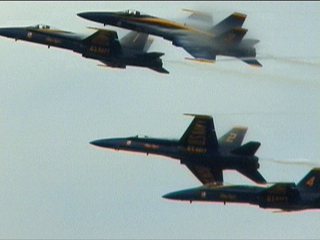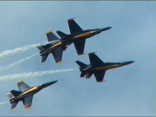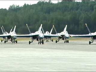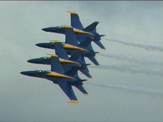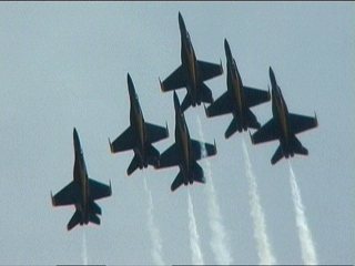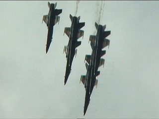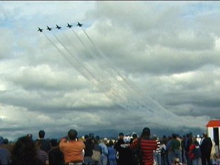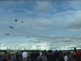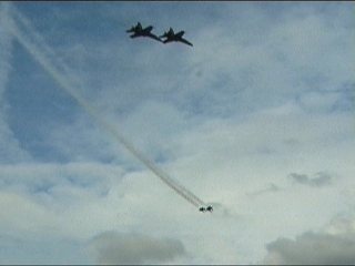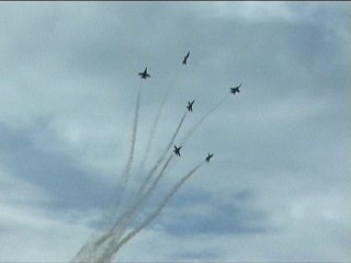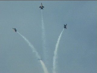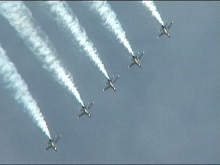 さすがに最後のデルタバーティカルブレイク(下向き開花)はカットされました。アトランタで見ておいて良かった…(^^;)最後は6機みんなでピッチアップからブレイクです。