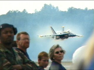 おーいいね!こういうの好き。実は広角系で撮るのって好きです。このあと、ソロも無理矢理ジョインナップしてすぐに6機デルタになります。すごいなあ。ばらばらになった編隊がジョインナップするところが一番の見物のような気がします。全機、視界の範囲内でまったく違う機動をして力ずくで集まるの。すごいよほんと、A/B使ってデモフライトの時みたいなハイGターンあり、スーパーホーネットみたいにカクッとケツあげてリカバリーしてる機体あり、とにかく凄い。さすがハチ。