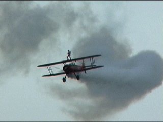 あ、またステアマンさん&ウィングウォークのおねぇちゃんです。