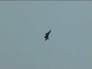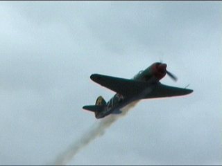 離陸後は遙か遠くですが、なにかやってくれてました。これ、フラットスピン。このまま水平に降りてきながら機首を右左。機体を傾けずに機首がこのまま右を向いたりする姿は気持ち悪いの。しかもそのまま回るんじゃなくて今度は切り返して左とか。普通のフラットスピンじゃありません、意識してやってます。(^^;)