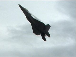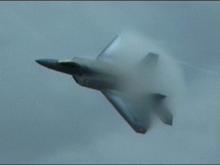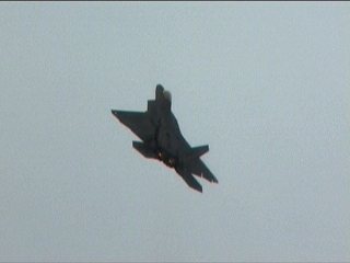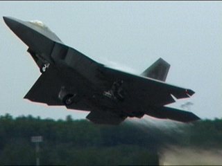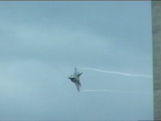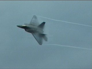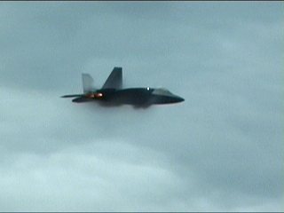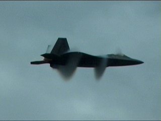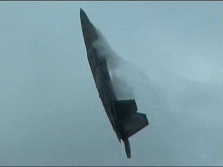 さあ今日も出ました、F-22RAPTOR登場です!離陸滑走時から既にベイパー出てるの。しかも垂直尾翼から。(^^;)
