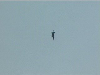 あ。またホバリングしてる。完全に止まってます。ぜったいにおかしいです。変です。気味悪い飛行機です。(笑)きっとラプターのデモって雲一つ無い快晴とかこの日のようなべったりの雲では動画映えしないんだろうなあと思いました。バックに雲が点在するような空なら、どんな動きをしてるのか分かりやすくなるはずです。比較対照がないと動いてるのか止まってるのかわかんないもん;これ、止まってるんですよ;;信じて!(笑)