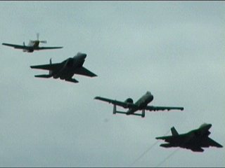 そういってるそばからA-10デモチーム、スタートです!相変わらずかっこわるい飛行機です!(^^;)