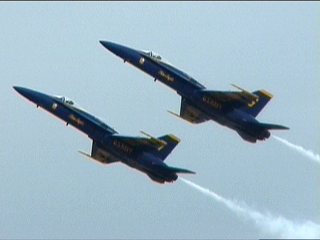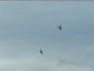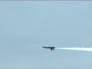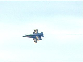 遙か遠くにファットアルバートがいました。ブルーズは海軍と海兵隊の混成部隊(?)です。ファットアルバートは海兵隊のクルーが運用してるんですね。(^^)蜂のほうにも、海兵隊のパイロットもいます。今シーズンは4番機さんがそうみたいです。