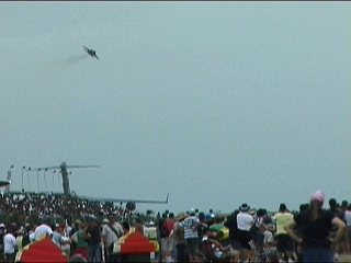 スピードが凄いんですよね。さてさて、このPACAFデモチーム、なぜか本国のファンの間ではあまり知られてないらしい;;比較的大規模な掲示板で、「いやあれはPACAFのデモチームだ」「そんなのどこにあるんだ?」「・・・?」「調べたぞ!日本の三沢基地らしい!」「おお、すごい!ナイス情報ありがとう!」・・・って程度のノリで情報交換されてました…。みんな、もっと把握しようよ。自国の空軍なんだから;;