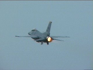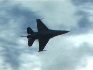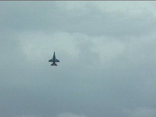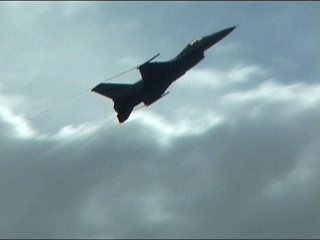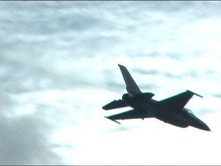 雲は多いけどしっかりばっちりハイショーです!F-16、軽快ですね!