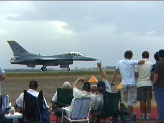 PACAF・F-16デモチーム登場です!実は本国のデモチームよりうまいような気がします。とはいえ、韓国へ行ってもアラスカに行ってもオーストラリアに行っても太平洋地域はこのデモチームが出てくるのでなかなか比べられません。アジア、北極、南極、地球を縦断デモチーム;