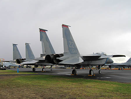F-15は嘉手納から。向こうの機体はノーマーク。あっちがデモフライトしました。こっそりひよこクラブマークとか描いてやりたいな。