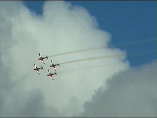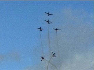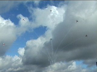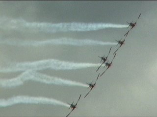 ブルーで言うところのローリングコンバットピッチのような機動は比較的いろんなチームが行います。有名どころではブルーエンジェルズもやりますね。課目名はタックアンダーブレイクですけども。スペインのパトルーラアギラもやりますし、韓国ブラックイーグルスもみせてくれます。でも名前が一番大げさなのは我らがブルーインパルスです。あ。ブラックイーグルスもいっしょか(笑)