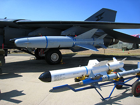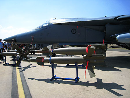 どっか遠くまで飛んでいきそうな爆弾です。で、垂直尾翼がなんだかカラフルなんですよね〜。No.3Sqの90周年かなんかだったかな?え?といっても、1916-2006って書いてあったよ。3年前の記念塗装機!?