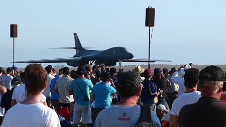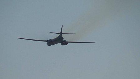 つづいてB-1離陸!この距離でアフターバーナー×4の機体が離陸するんですから、そりゃ凄いですよ;;
