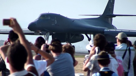 HDDのビデオカメラは爆音でストップすると言われますが、大丈夫。この至近距離でのB-1のアフターバーナー離陸に耐えました。航空祭撮影にはまったく問題ないでしょう!