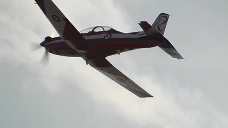 オーストラリア空軍のPC-9は全部この塗装だそうです。この日は編隊ではなかったけど、スモーク曳いてアクロをソロでやってました。これもルーレッツのメンバーが操縦してるのかな?