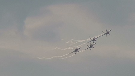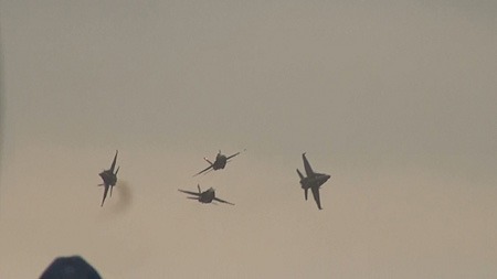 FormationAerobaricの文字がありました。何をやるんだろう。ついにルーレッツもF/A-18に機種転換か!?と思いましたけど、要するに編隊飛行でした。でもタイトでなかなかの見応えでした。海外では編隊飛行って珍しいもんね。しかもそのまま旋回したり、見応えがあったよ。(*^ー^*)