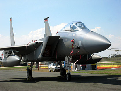 米空軍はどこにでもやってきます。F-15。普段F-15を見慣れない国では珍しい展示でしょうね。