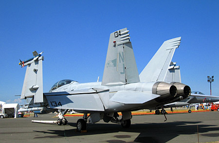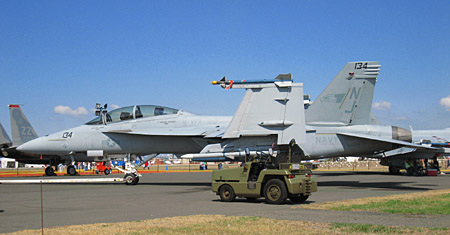 F-22導入を諦めたオーストラリアが採用したのはこれ、F/A-18E/Fです。今回はもちろん米海軍がデモを担当しましたが、注目度は抜群です。オーストラリア空軍はもとからF/A-18を運用してましたので、そのままE/Fに繋がるのは不自然ではないかな。(ぜんぜん別な機体だそうですけど;;)