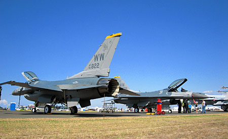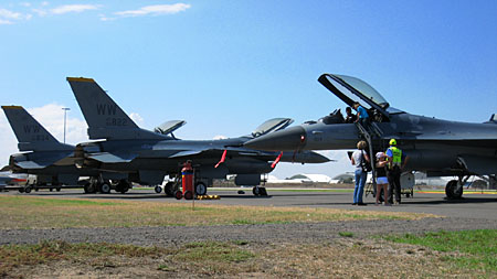 これまた見慣れた人達がいました。三沢のF-16デモチームです。太平洋空軍のデモチームですので、この地域のエアショーには元気よく参加します。