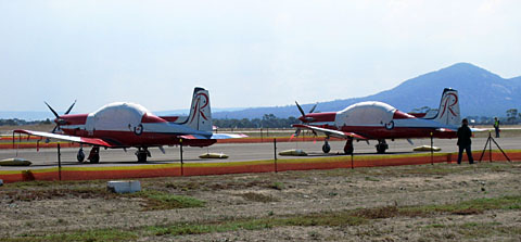 この日アクロを見せた飛行機たちです。真ん中のは、動力を付けたグライダー。元気に飛び回りますよ。