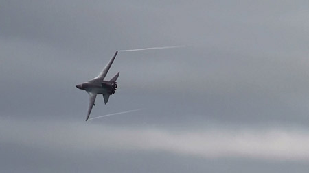 こんなにベイパーが出るくらいの機動もしてしまう爆撃機です。似たような機種ではやっぱりロシアのブラックジャック。恐ろしいものを持ってる国ですね。。。