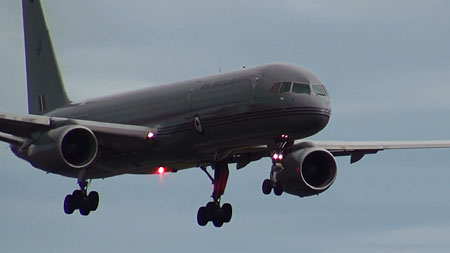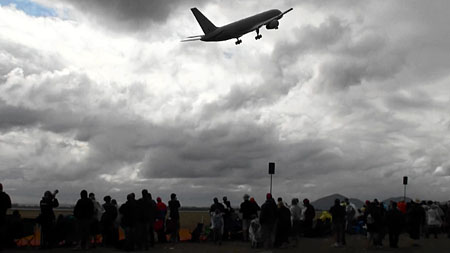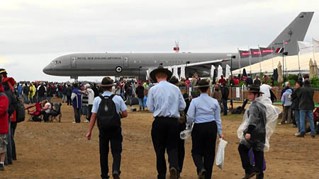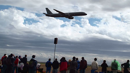 B-1も大きいですが、旅客機と比べるとやっぱり小さいです。A380の後とかに見ると、ものすごくスリムで小柄な機体に見えますよ。って、これはニュージーランドのB.757。ヒトと比べると大きいです。