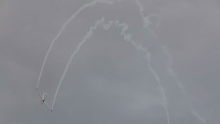 さて、でっかい戦略兵器が通過した後は小さく平和で優雅なグライダーのアクロにしましょう。なんか、ほっとします。動力つき。へんなのー。