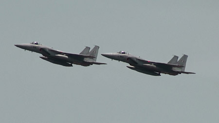 ナイフエッジ。いいですねえ、もう日本に導入されて30年になろうとしてるF-15、ここまで使いこなしてる空自は凄いです。