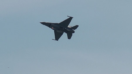 ベイパーの出方も派手。F-16よりも大きな主翼、たまりません。