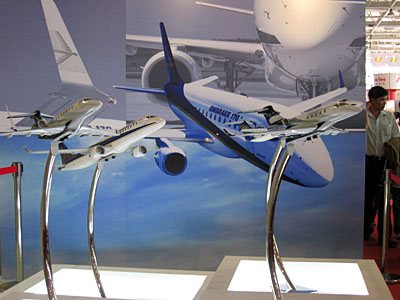 エンブラエルのブースでしたかねえ。。。ブラジルは実は航空大国です。みなさんもうご存知ですよね。リージョナルジェット的な中小型機は激戦区です。ご存知三菱や中国、それにロシアのスホーイまでこのクラスに新型機でしのぎを削っています。今後どうなるのかな??
