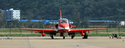 あ、これ、会場正面にいた奴。インド空軍スリヤキランの使用機です。もちろん、インド国産のキランです。あんまり、かっこいいとは思えない形。