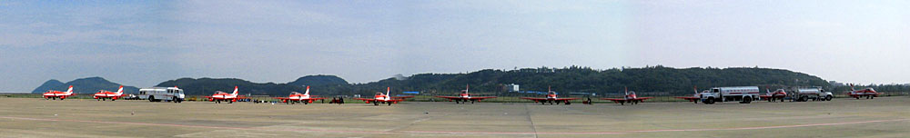 赤いの9機、なんかレッドアローズみたい。(*^▽^*) インド空軍のスルヤキランです!いや、スルヤかスリヤかどっちなんだ。