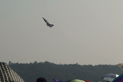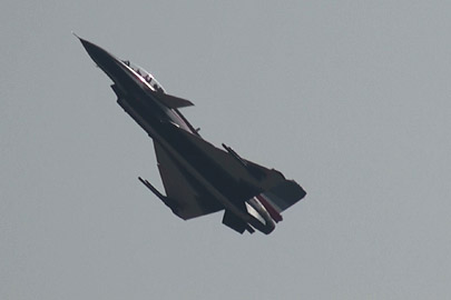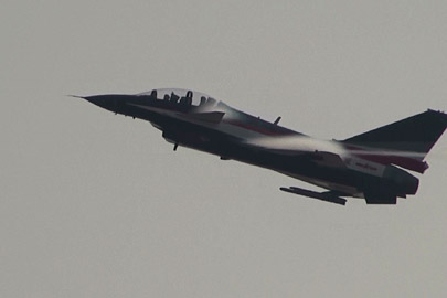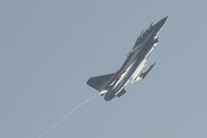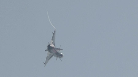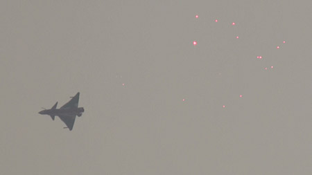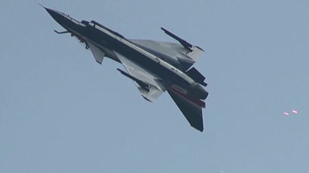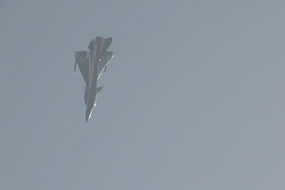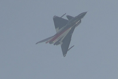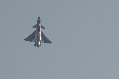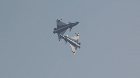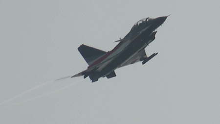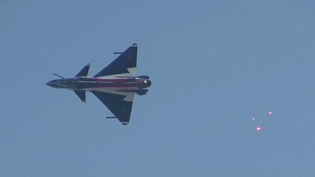 左から来てクルクルっと斜め上にロールを打った後、翻して今度は右から来ました。J-10の軽快さがよく分かる課目でした。